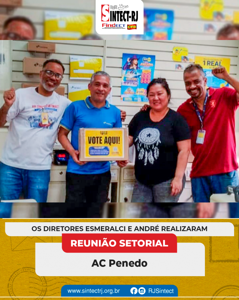 O SINTECT-RJ segue atuante na defesa dos trabalhadores e esteve presente na AC Penedo para mais uma reunião setorial. Os diretores Esmeralci e André Messias dialogaram diretamente com os trabalhadores, abordando temas fundamentais para a categoria.