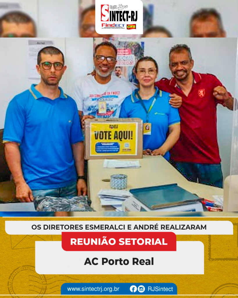 O SINTECT-RJ segue atuante na defesa dos trabalhadores e esteve presente na AC Porto Real para mais uma reunião setorial. Os diretores Esmeralci e André dialogaram diretamente com os trabalhadores, abordando temas fundamentais para a categoria.