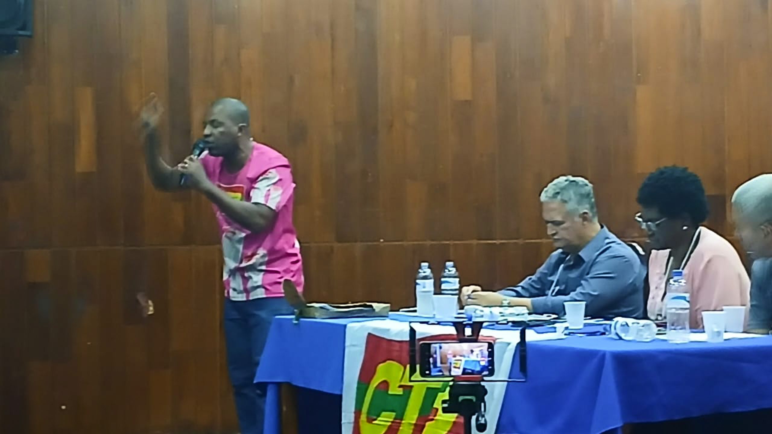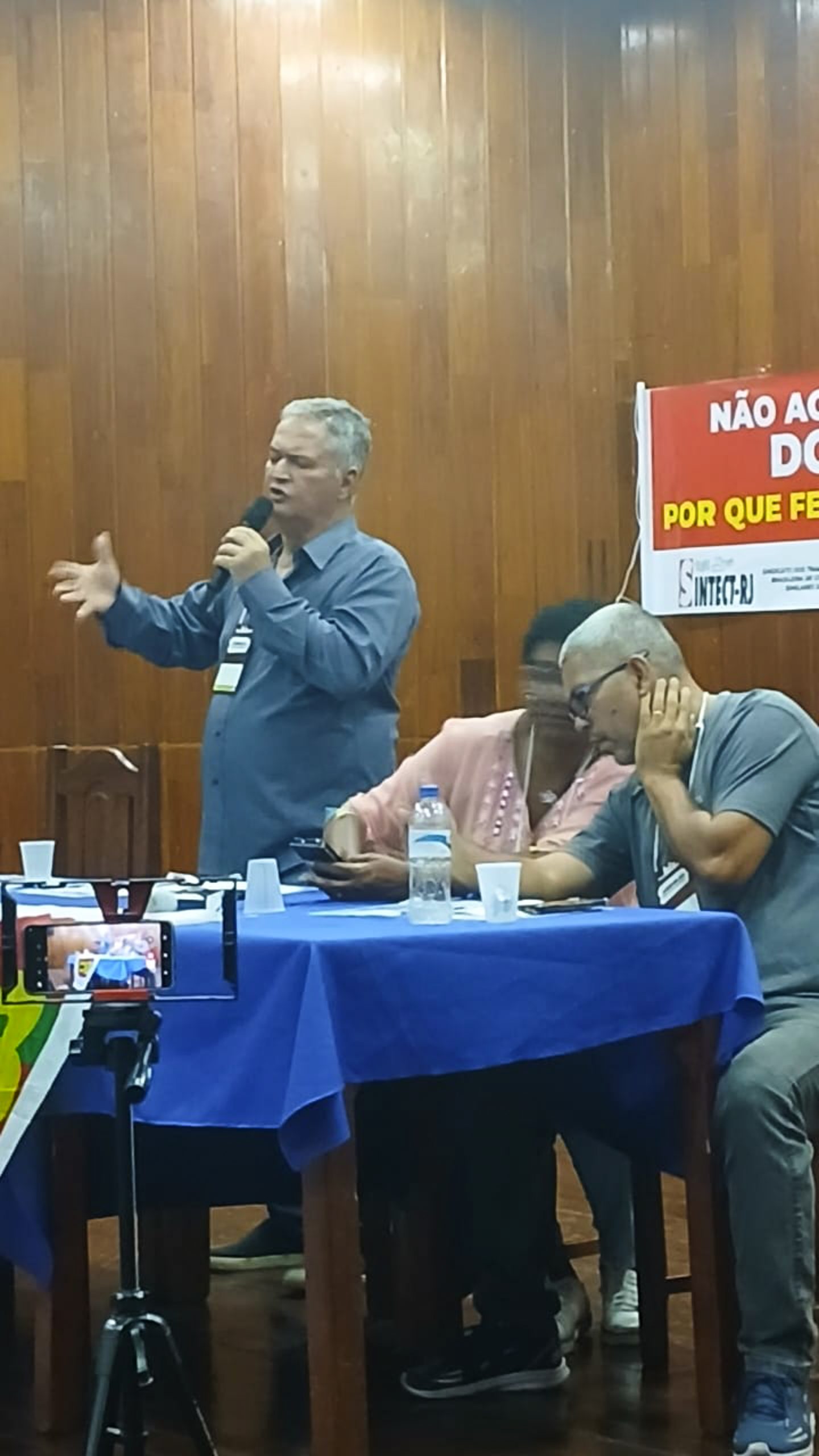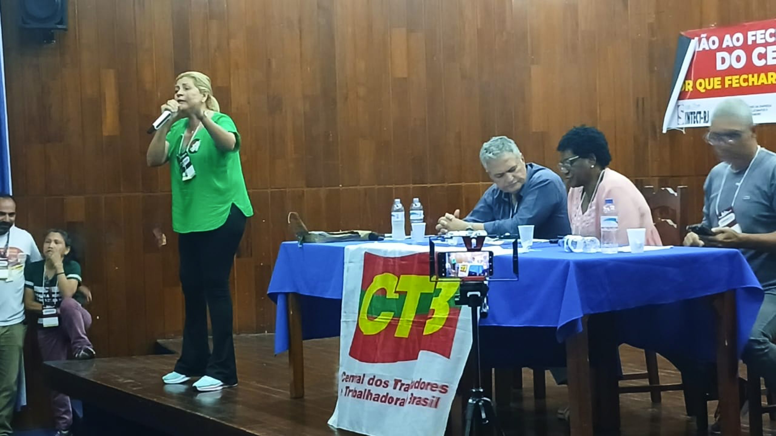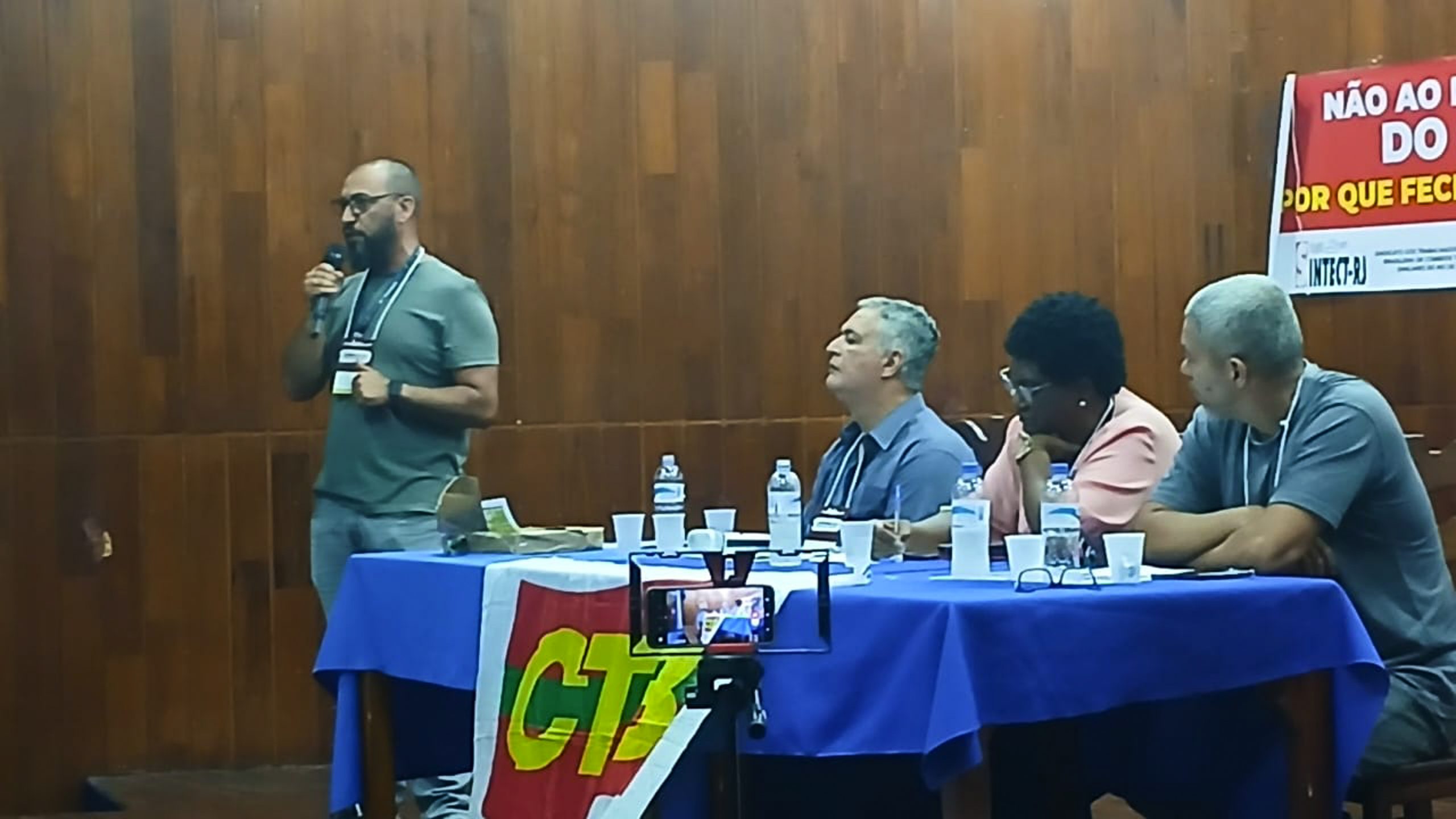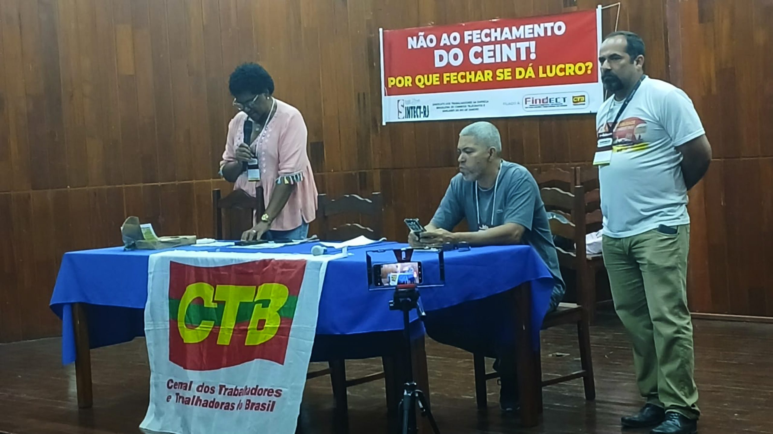 “Contamos com vocês para fazer um grande movimento por nossa campanha salarial e em defesa dos Correios, no dia 7, contra o fechamento de unidades, o fechamento do Ceint, o Terminal de Carga Aérea Nacional e Internacional que dá lucro de 20 milhões. E a direção da empresa querendo fechar a unidade que dá lucro diante das dificuldades e da crise financeira dos Correios”, comentou Marcos Sant’aguida, presidente do Sintect-RJ, que apresentou os eixos da campanha salarial da categoria.