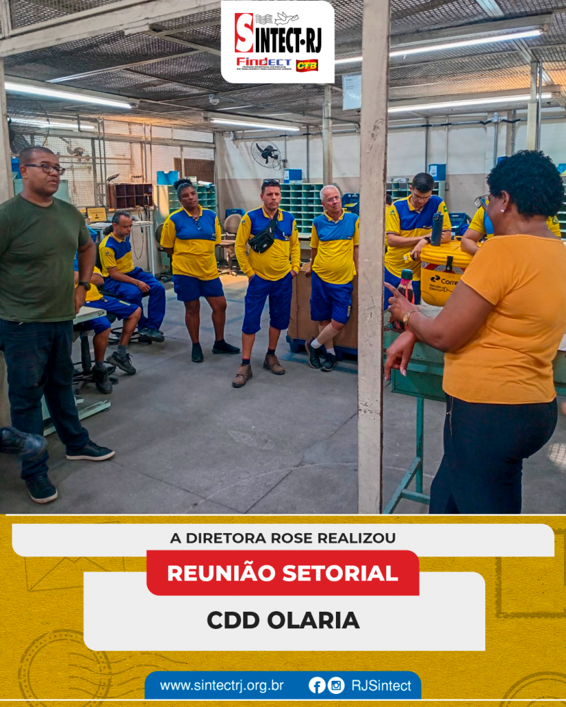 O SINTECT-RJ segue atuante na defesa dos trabalhadores e esteve presente no CDD OLARIA para mais uma reunião setorial. A diretora Rose dialogou diretamente com os trabalhadores, abordando temas fundamentais para a categoria.