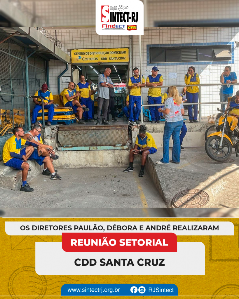 O SINTECT-RJ segue atuante na defesa dos trabalhadores e esteve presente no CDD SANTA CRUZ para mais uma reunião setorial. Os diretores Paulão, Débora e André dialogaram diretamente com os trabalhadores, abordando temas fundamentais para a categoria.