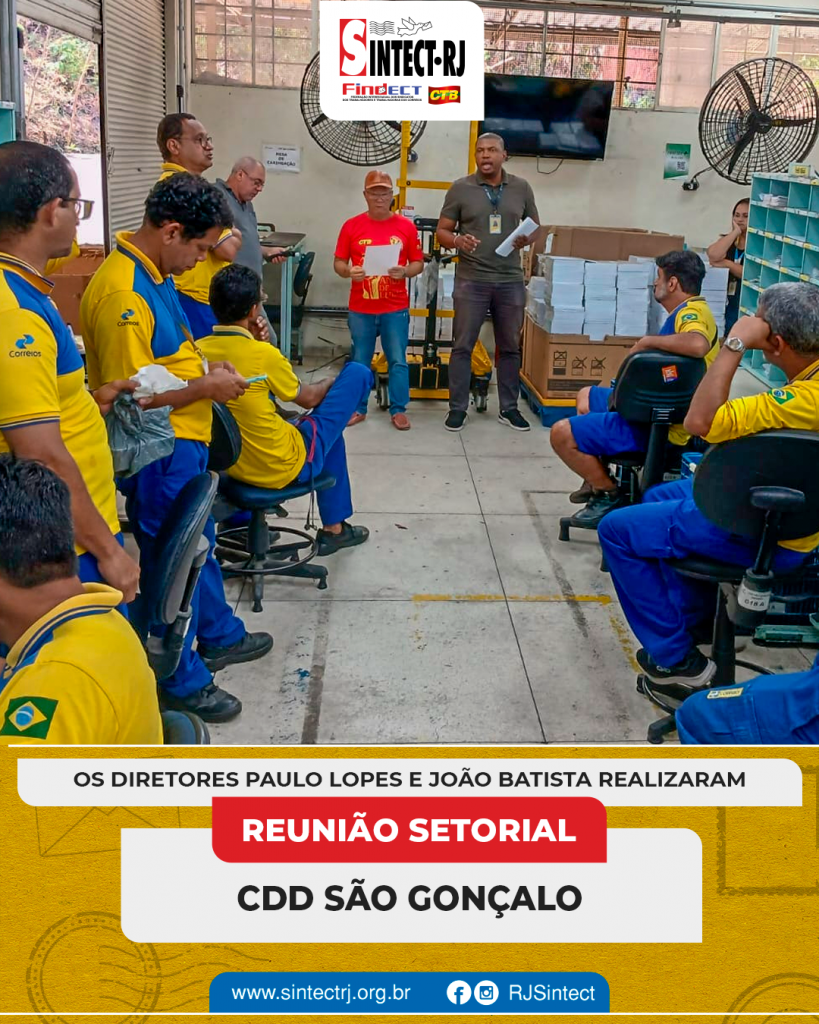 O SINTECT-RJ segue atuante na defesa dos trabalhadores e esteve presente no CDD SÃO GONÇALO para mais uma reunião setorial. Os diretores Paulo Lopes e João Batista (JB) dialogaram diretamente com os trabalhadores, abordando temas fundamentais para a categoria.