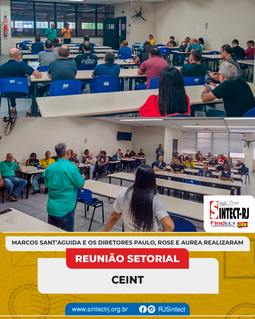 O SINTECT-RJ segue atuante na defesa dos trabalhadores e esteve presente no CEINT para mais uma reunião setorial. O presidente Marcos Sant’aguida e os diretores Paulo Machado, Rose e Aurea dialogaram diretamente com os trabalhadores, abordando temas fundamentais para a categoria.