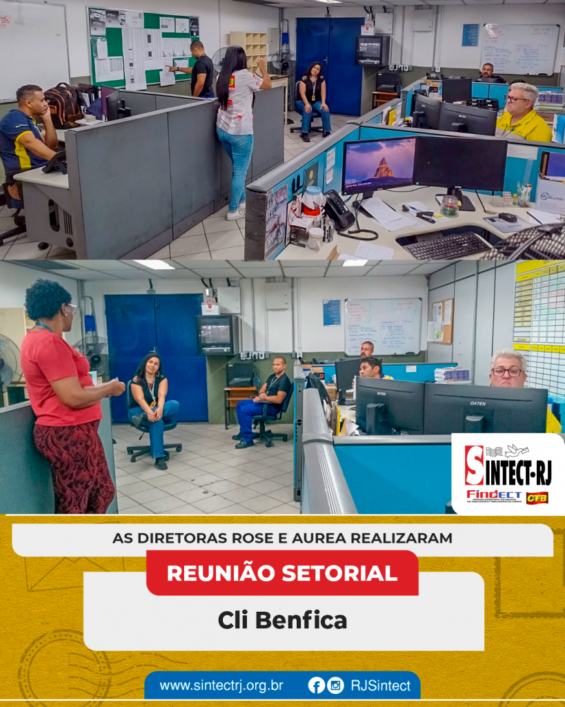 O SINTECT-RJ segue atuante na defesa dos trabalhadores e esteve presente no Cli Benfica para mais uma reunião setorial. As diretoras Rose e Aurea dialogaram diretamente com os trabalhadores, abordando temas fundamentais para a categoria.
