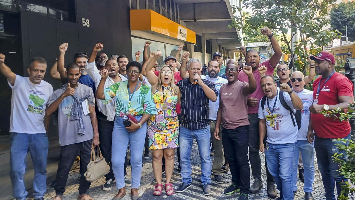 MOTORISTAS TERCEIRIZADOS PROTESTAM CONTRA ATRASOS DE PAGAMENTO EM FRENTE AOS CORREIOS NO CENTRO DO RIO