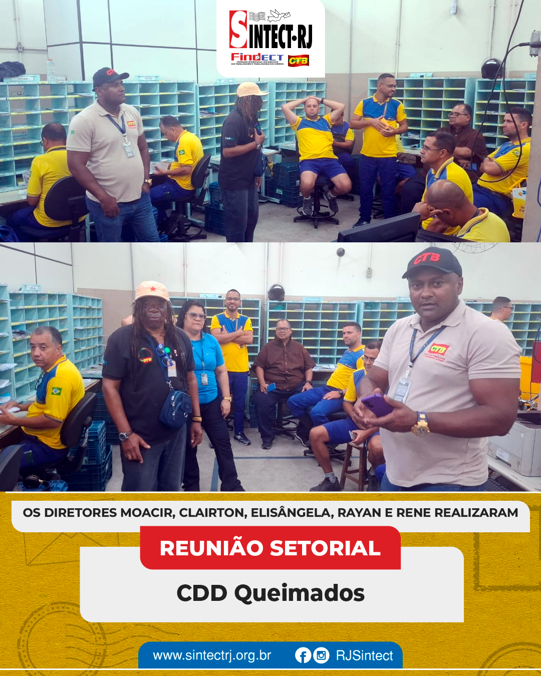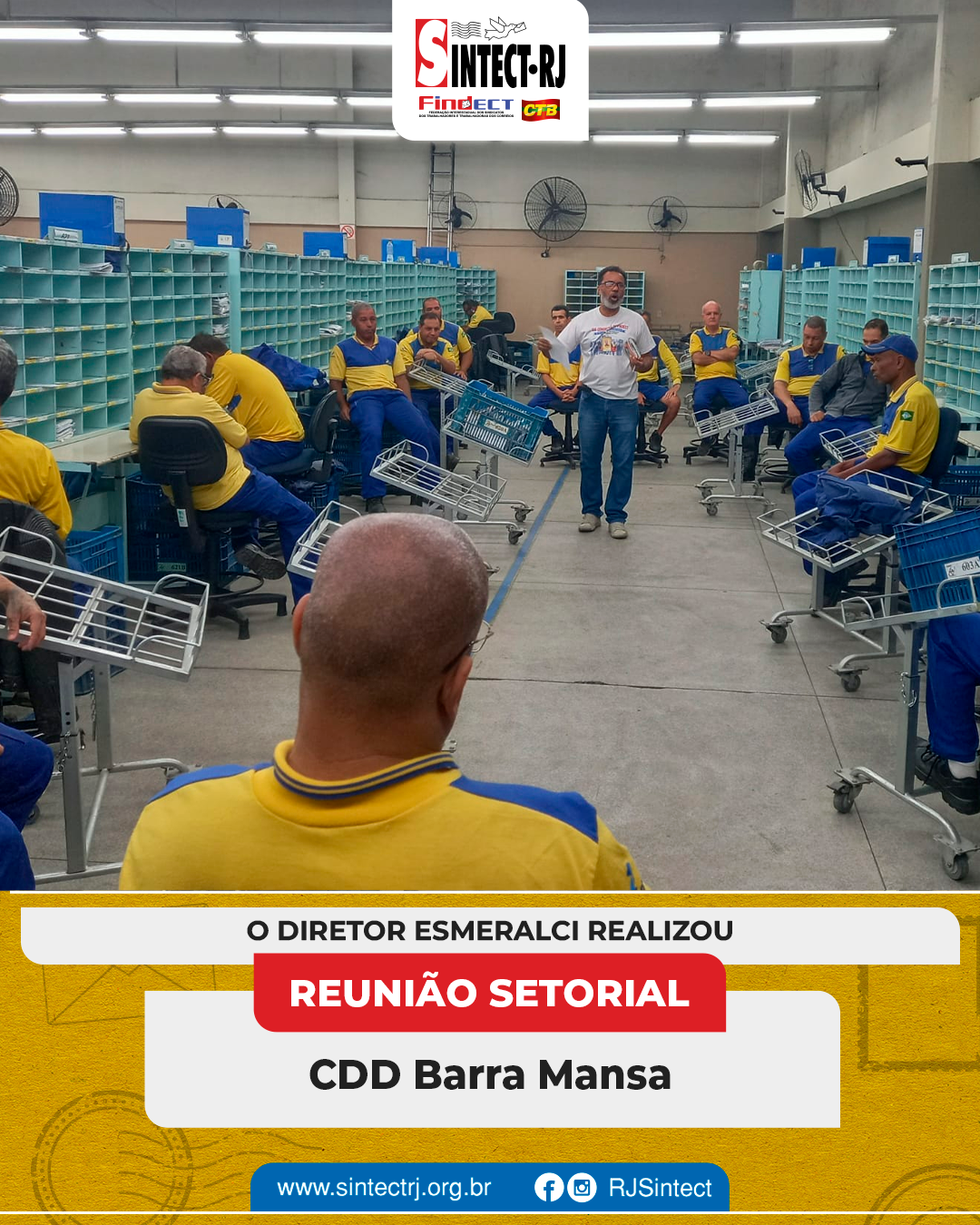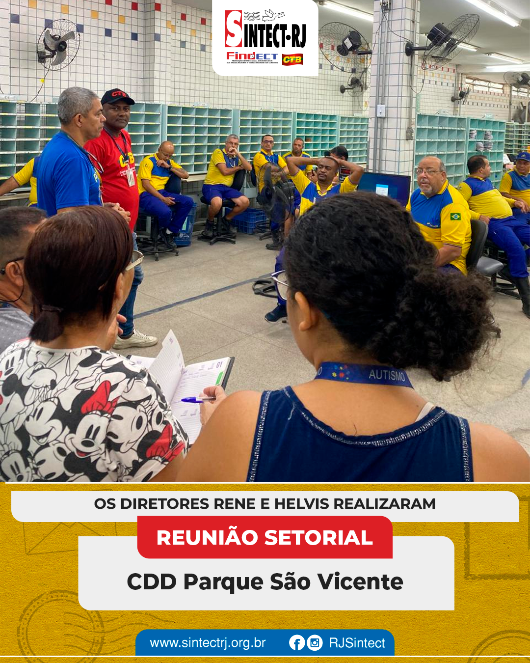 O SINTECT-RJ segue atuante na defesa dos trabalhadores e esteve presente nas unidades CDD’s Angra dos Reis, Volta Redonda, Resende, Barra Manda, São José do Barreto, Cabuçu, Campo Grande, Mangaratiba, Oeste, Queimados, Vila de Cava, Retiro e Parque São Vicente e a AC Queimados para mais reuniões setoriais. Os diretores dialogaram diretamente com os trabalhadores, abordando temas fundamentais para a categoria.