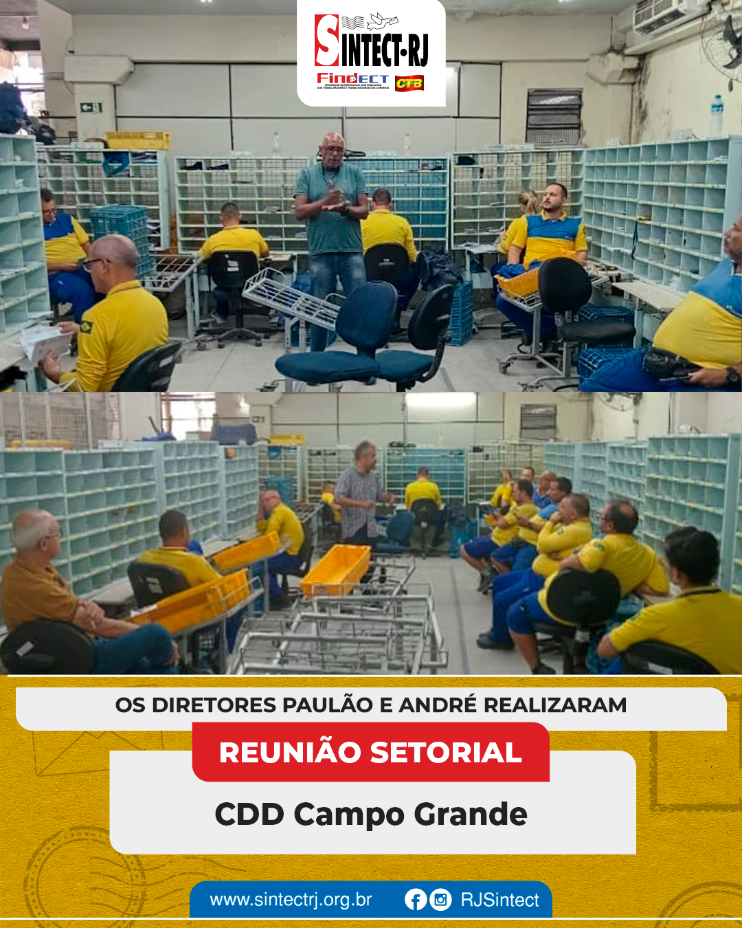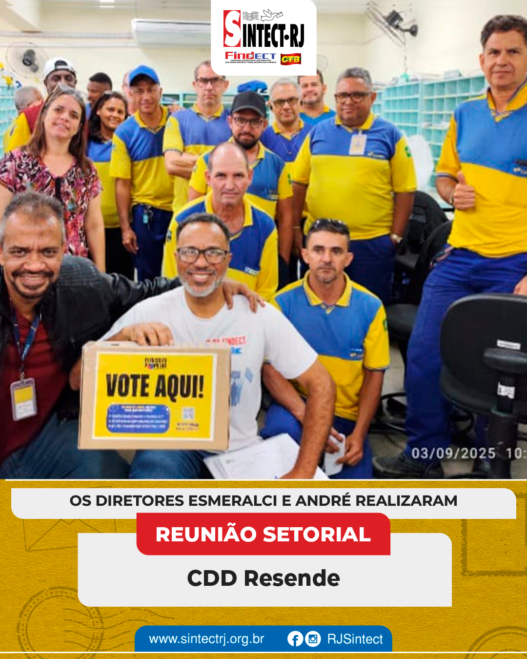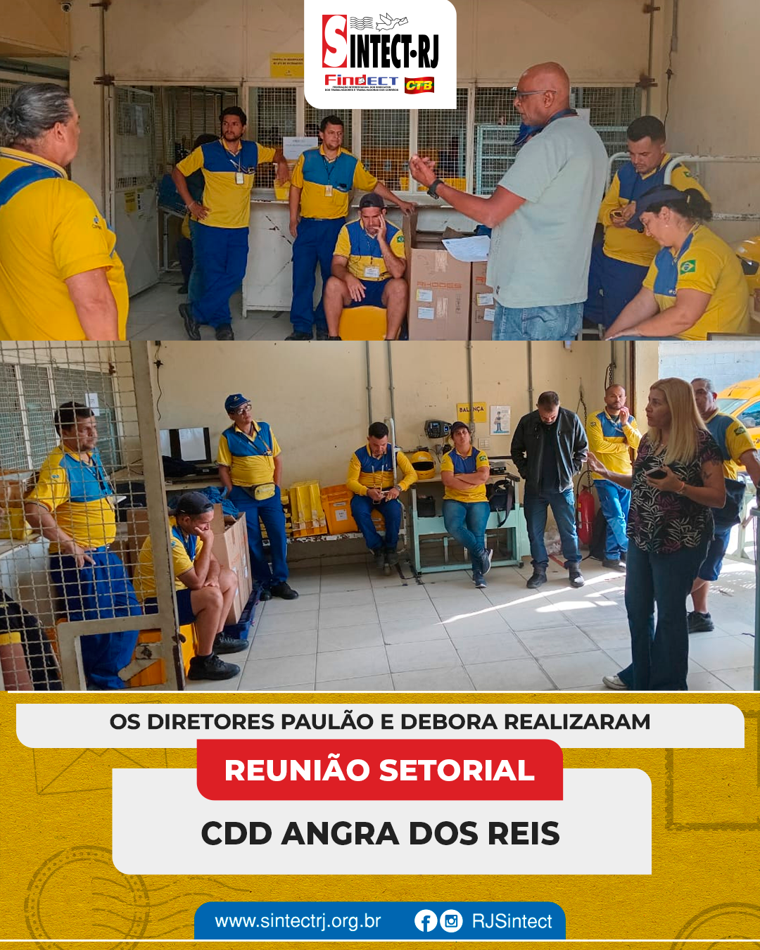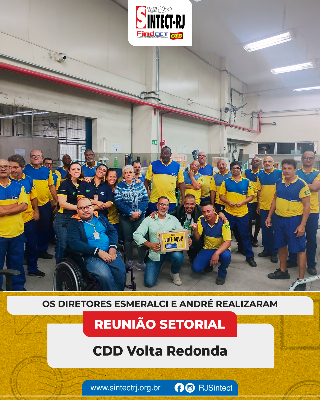 O SINTECT-RJ segue atuante na defesa dos trabalhadores e esteve presente nas unidades CDD’s Angra dos Reis, Volta Redonda, Resende, Barra Manda, São José do Barreto, Cabuçu, Campo Grande, Mangaratiba, Oeste, Queimados, Vila de Cava, Retiro e Parque São Vicente e a AC Queimados para mais reuniões setoriais. Os diretores dialogaram diretamente com os trabalhadores, abordando temas fundamentais para a categoria.