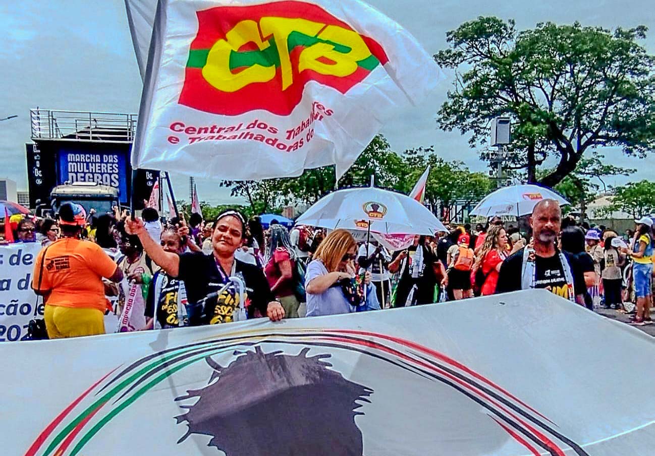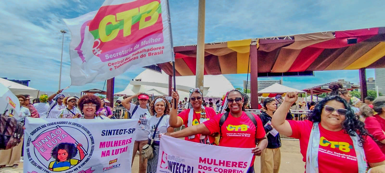 Diretoras do SINTECT-RJ, da FINDECT e da CTB fortaleceram a mobilização que reuniu cerca de 500 mil mulheres na capital federal.