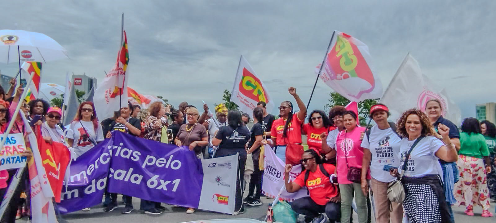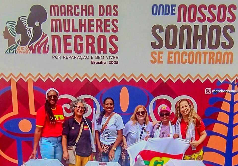 Representaram o SINTECT-RJ as diretoras Rosemeri Leodoro, Alessandra Kubana e (nome da terceira diretora), caminhando ao lado de trabalhadoras de diversas categorias, movimentos sociais e lideranças de mais de 40 países. A participação do sindicato reafirma o compromisso com a luta antirracista, a eliminação da violência contra as mulheres e a ampliação de políticas que garantam dignidade às mulheres negras.